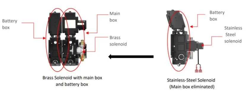 Due to supply issues, Delta has temporarily reverted back to the previous brass solenoid and main box for the 590-TFHDF Series. This situation is expected to be resolved by the end of August at which time Delta will re-instate the newer box and stainless-steel solenoid. Updates will continue to be provided, as available.